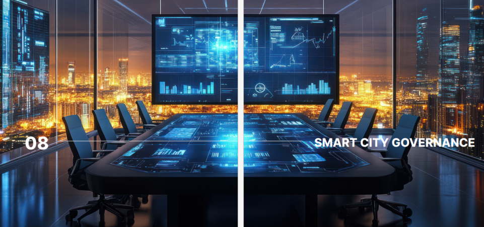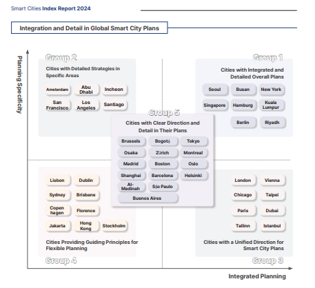 Smart city governance refers to the decision-making and management system a city implements to promote smart city development and address common issues. It includes sharing the smart city vision, establishing strategies and methods for implementation, and defining the scope of authority and influence. In this sense, governance is defined as encompassing all these elements. To measure the level of governance, this report analyzes the changes since 2022 by focusing on key strategic reports and dedicated organizations of 50 global cities, which contain information about their smart city visions and strategy formulation.